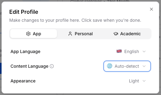 You can now choose your preferred content language in acemate!Head to your user settings to set the language not just for the app's interface, but now also for all AI-generated content including exams, flashcards, summaries, and quizzes. By default, itβs set to auto-detect, meaning acemate automatically matches the language of your uploaded lecture material.